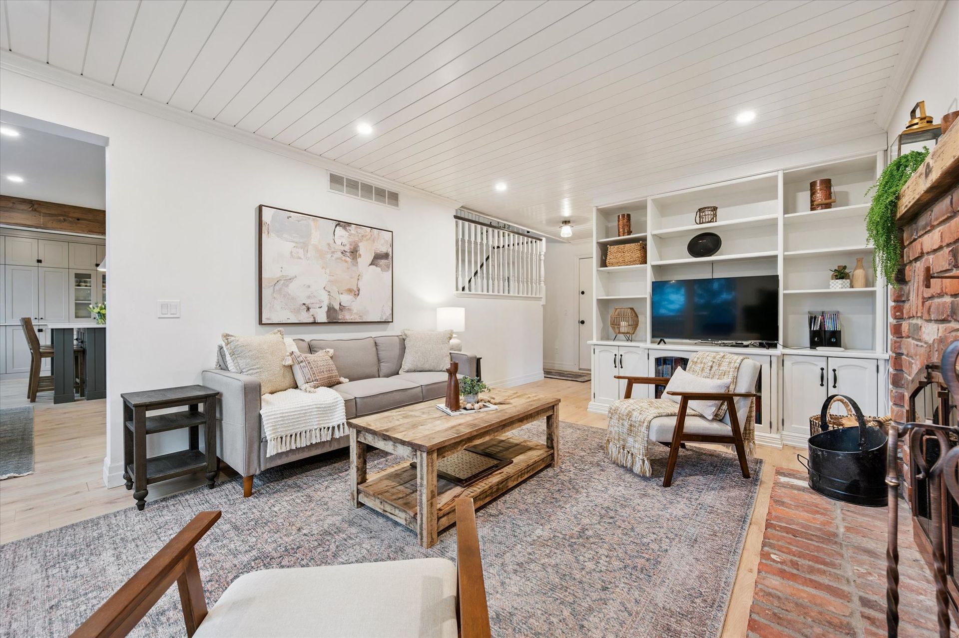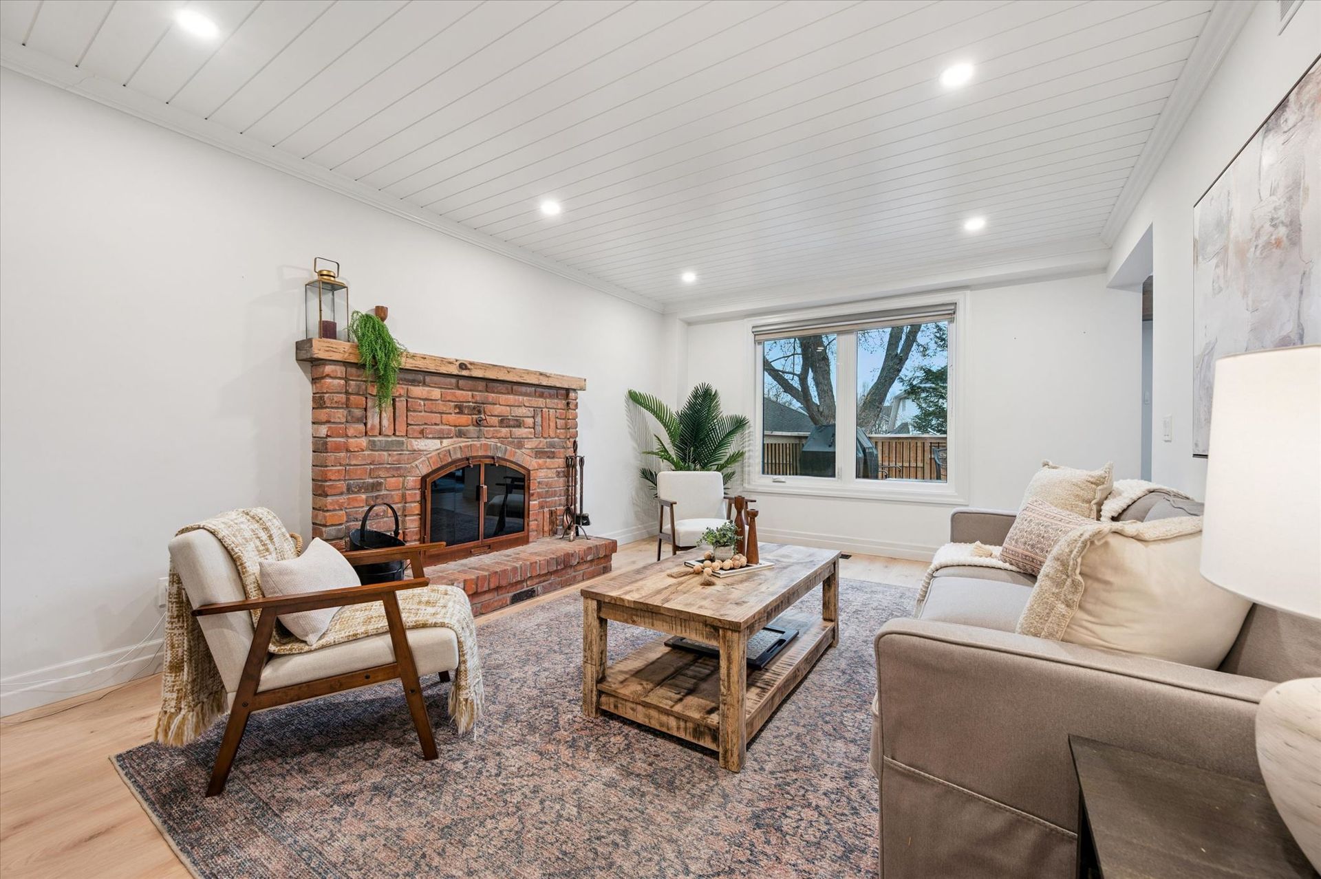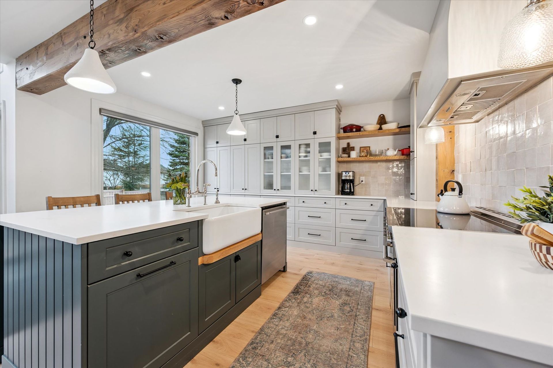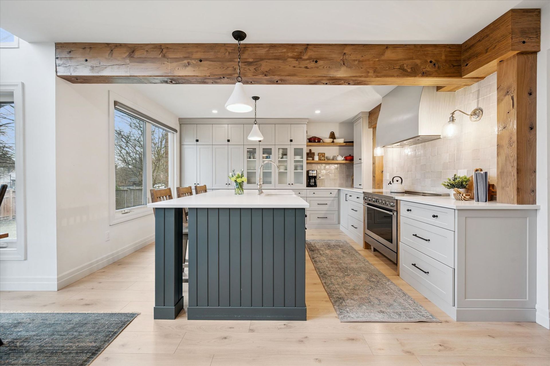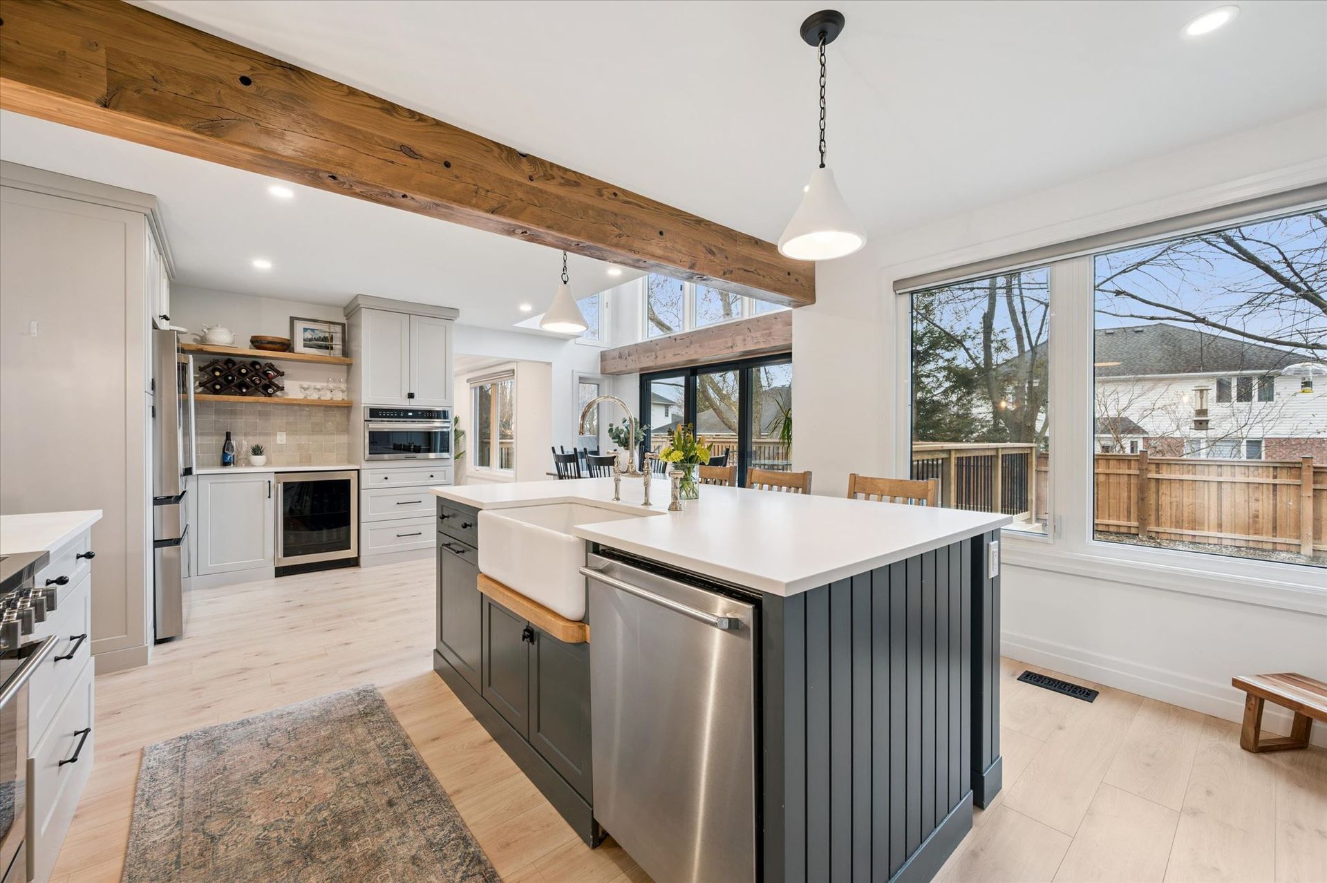 Reclaimed Wood Beams, Wood Burning & Gas Fire Place, Large Back Deck, Carpet Free, Open Concept Living