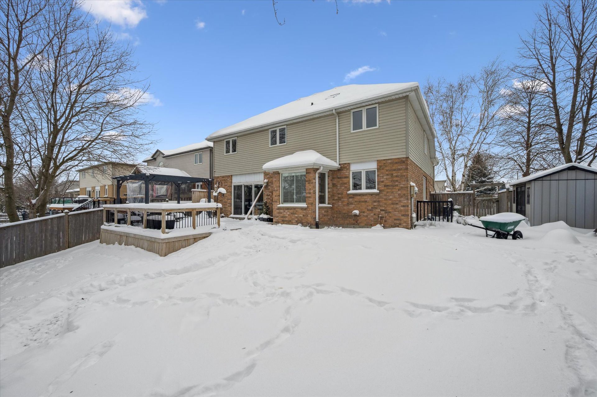 Welcome to 2 Oakridge Drive, a standout Thomasfield home in Guelph's highly sought-after South End, offering exceptional space and the added value of a legal two-bedroom basement apartment-perfect for move-up buyers looking for a built-in mortgage helper. With over 3,600 sq ft of total living space, this is a home designed to grow with you. The attractive brick exterior sets the tone, while inside you'll find bright, open-concept principal rooms ideal for everyday living and effortless entertaining. The living and dining area is anchored by cherry hardwood floors and soaring two-storey windows. At the heart of the home is the eat-in kitchen, featuring stainless steel appliances, ample cabinetry, and a breakfast area that flows seamlessly into the main-floor family room, complete with a cozy fireplace and walkout to the rear deck. Backing directly onto Pine Ridge Park, the backyard opens to green space and one of the neighbourhood's favourite tobogganing hills-an fun perk for families! Upstairs, the primary suite is a true retreat with a vaulted ceiling, walk-in closet, and ensuite featuring a relaxing jacuzzi tub. Three additional bedrooms are serviced by a well-appointed 4-piece family bath, while an open-concept den overlooking the living room below provides a bright and flexible space for working from home. The lower level offers even more versatility, with a bonus flex room ideal for a recreation room, teen hangout, home gym, or guest space. The remainder of the basement is dedicated to the legal two-bedroom apartment with its own separate side entrance, a consistently desirable rental thanks to its proximity to public transit, shopping, and everyday amenities. Complete with a double garage, inside entry, and a practical mudroom/laundry area, this home checks every box for buyers seeking space, flexibility, and long-term value. A rare opportunity to secure a family home with income potential in an exceptional location!