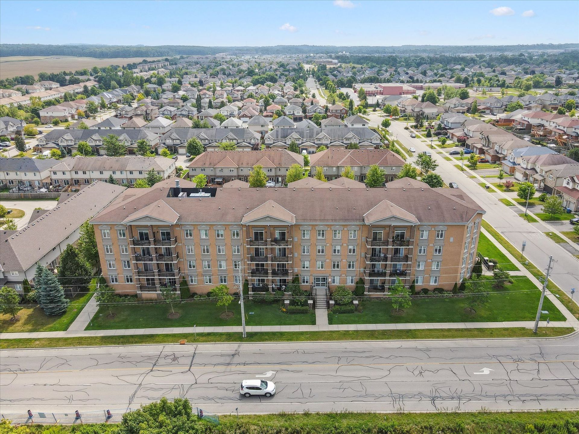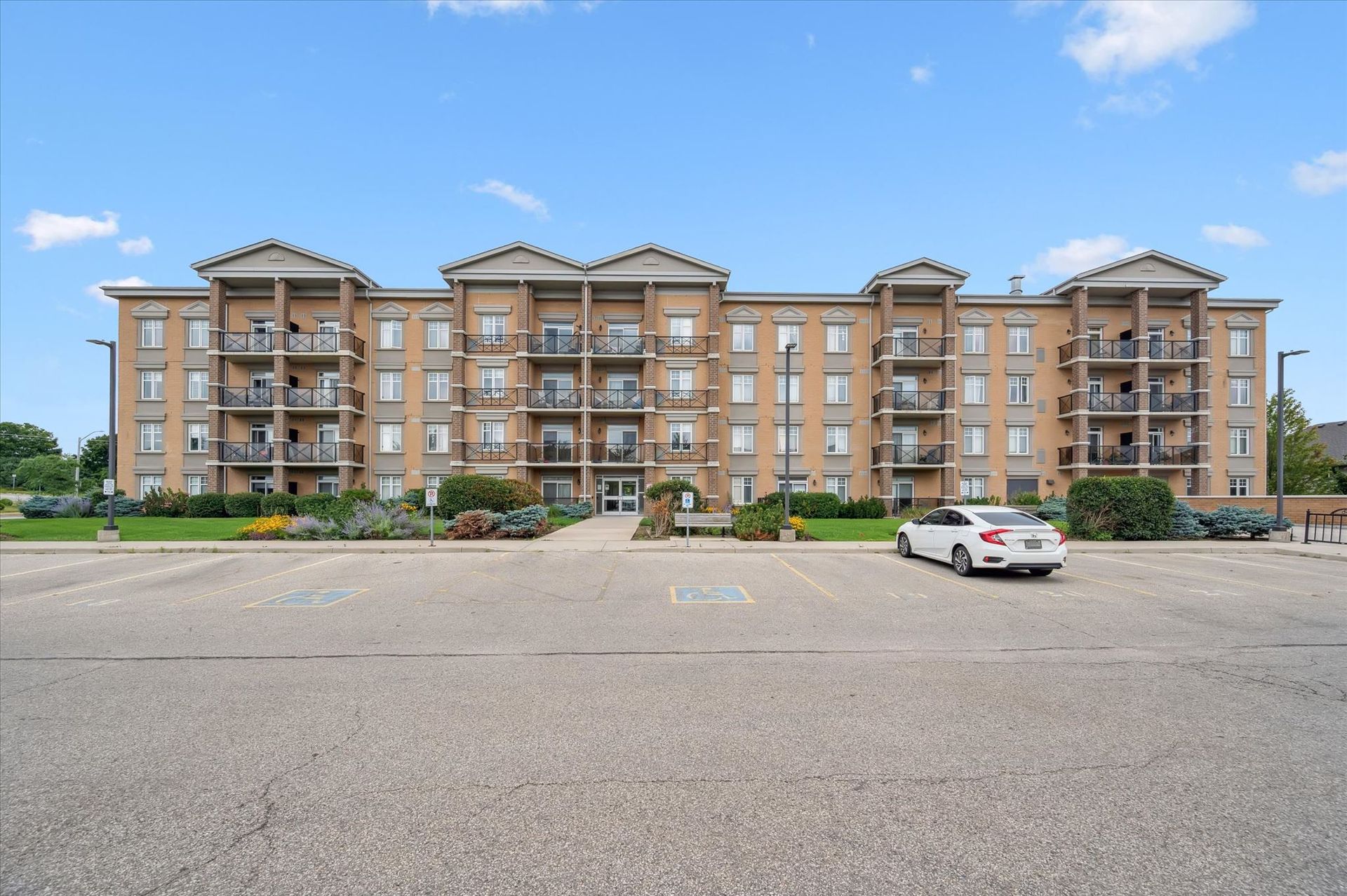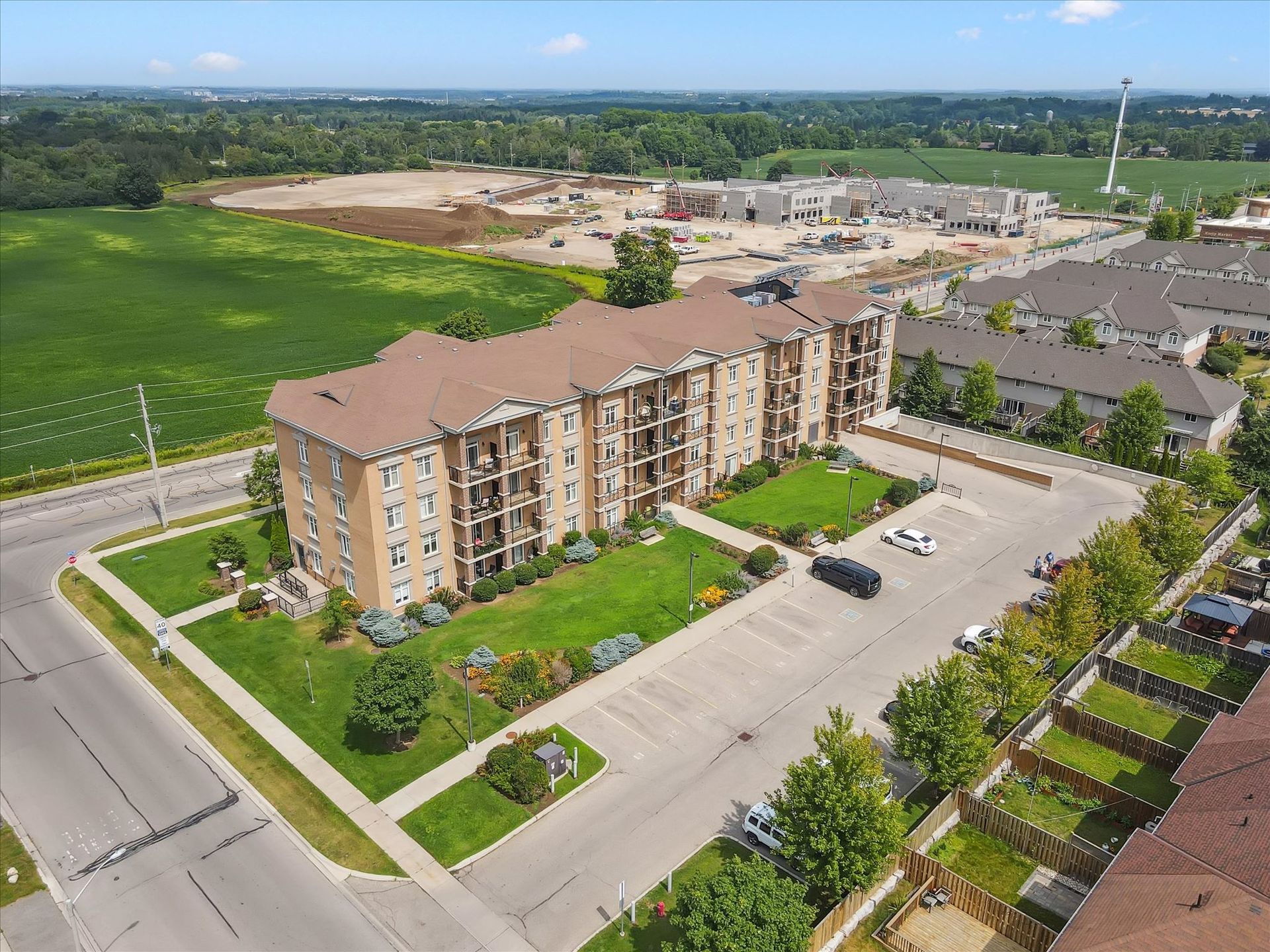 Absolutely gorgeous and move-in ready! This bright, stylish top floor, end-unit South End Guelph condo is dressed to impress with granite countertops, wood-look flooring, and soft, neutral finishes that make decorating a breeze. Offering over 810 sq. ft., it features two bedrooms and two full bathrooms, including a lovely primary suite with its own ensuite and a glass-enclosed shower. The open-concept layout feels fresh and inviting perfect for hosting friends with an updated kitchen complete with stainless steel appliances and a chic backsplash overlooking the living and dining area. Step through the patio doors to your private balcony, ideal for morning coffee or unwinding after a long day. Youll also enjoy an underground parking spot, plus building perks like a well-equipped gym, event/party room, and plenty of visitor parking. Just minutes from the University of Guelph, everyday conveniences, and the 401, its a beautiful choice for both homebuyers and investors.