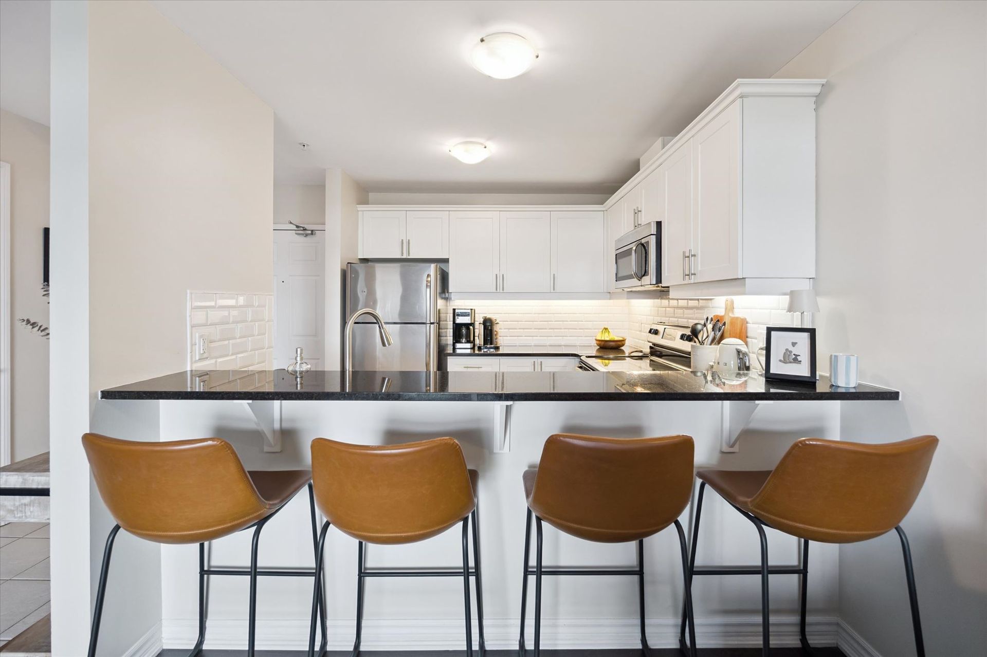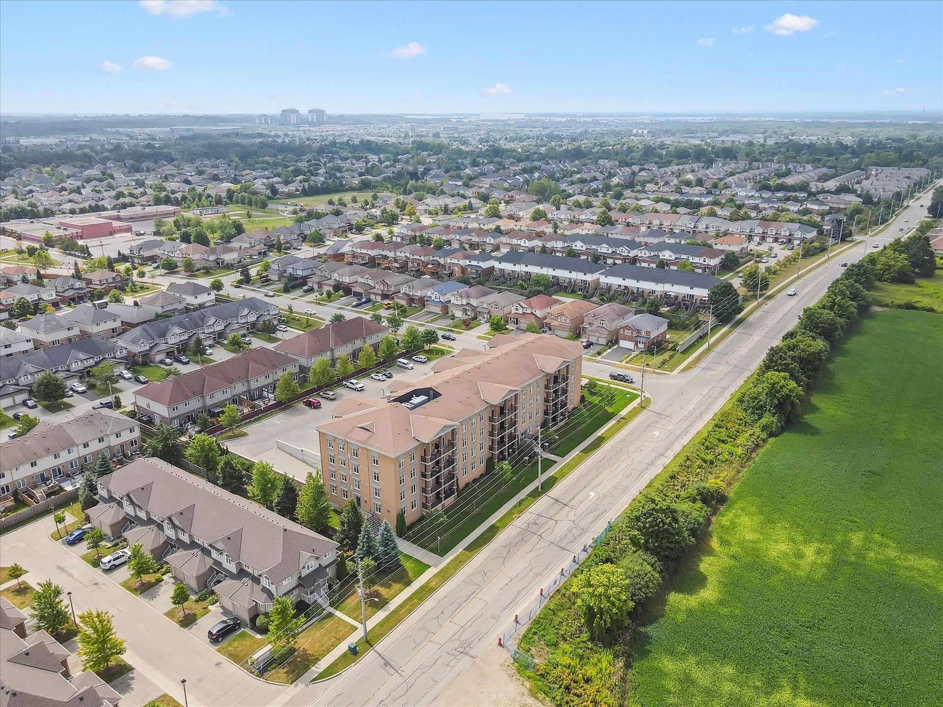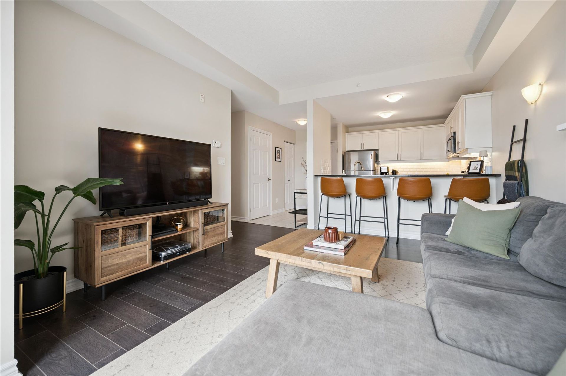 Absolutely gorgeous and move-in ready! This bright, stylish top floor, end-unit South End Guelph condo is dressed to impress with granite countertops, wood-look flooring, and soft, neutral finishes that make decorating a breeze. Offering over 810 sq. ft., it features two bedrooms and two full bathrooms, including a lovely primary suite with its own ensuite and a glass-enclosed shower. The open-concept layout feels fresh and inviting perfect for hosting friends with an updated kitchen complete with stainless steel appliances and a chic backsplash overlooking the living and dining area. Step through the patio doors to your private balcony, ideal for morning coffee or unwinding after a long day. Youll also enjoy an underground parking spot, plus building perks like a well-equipped gym, event/party room, and plenty of visitor parking. Just minutes from the University of Guelph, everyday conveniences, and the 401, its a beautiful choice for both homebuyers and investors.