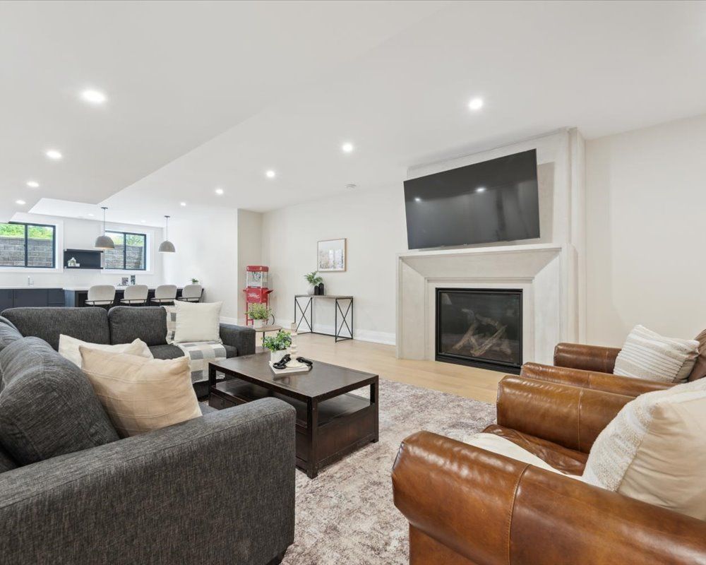 2.4 acres, Soaring Ceilings, Oversized Windows, Open-Concept Layout, Finished Basement, Hot Tub, Heated Floors in Ensuite, Full Gym & Suana, 18 Parking Spaces