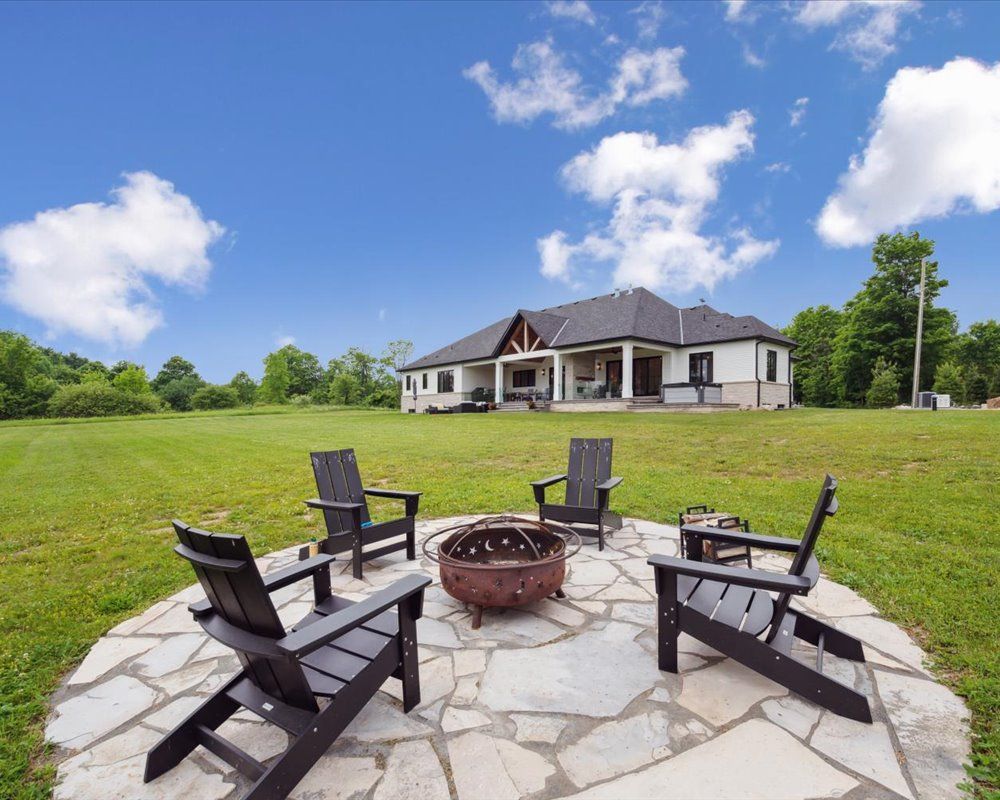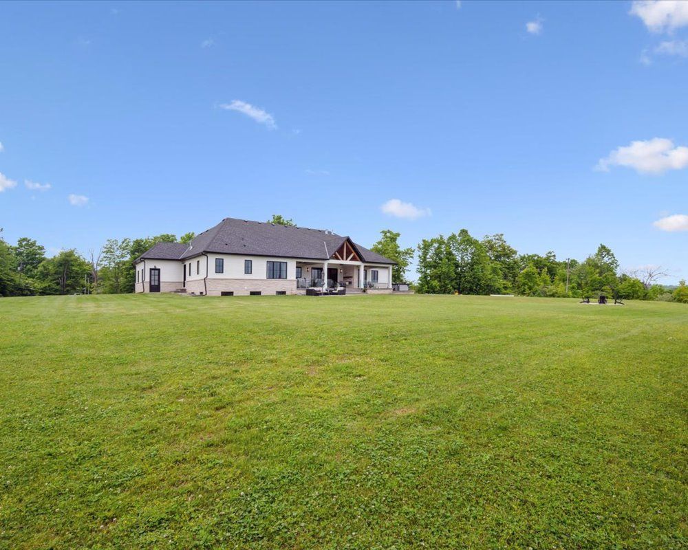 Custom-Built Luxury Bungalow on 2.4 Private Acres with Escarpment Views. Welcome to this one-of-a-kind custom-built bungalow offering 3,400 sq. ft. of refined main floor living space, perfectly nestled on 2.4 acres of serene countryside. With panoramic views of the escarpment and set well back from the road, this residence offers exceptional privacy while being just 20 minutes from the 401. Designed with luxury and functionality in mind, the home boasts soaring ceilings and oversized windows, creating an expansive, airy ambiance throughout allowing the natural landscape in and flooding the home with light. The main level features a seamless open-concept layout anchored by a great room and primary bedroom with oversized sliding doors opening to an extended outdoor living space with a two sided fire place, hot tub, and an abundance of entertaining space. The heart of the home is a chefs dream kitchen outfitted with top-tier Wolf, SubZero, and Cove appliances, complemented by a stylish servery just off the formal dining room. Retreat to the spacious primary suite, a true sanctuary offering an oversized spa-inspired ensuite complete with heated floors, a large walk-in shower, water closet, luxurious soaker tub, dual sinks with an extended vanity, and a generously sized walk-in closet. Two additional bedrooms on the main floor each enjoy their own private ensuites. Downstairs, the wow factor continues. The 10-foot ceilings and expansive windows make the finished basement feel anything but below grade. Designed for versatility, the lower level includes a full gym, sauna, and a private entry from the oversized 3-car garagemaking it perfect for an in-law suite. This separate living space features a bedroom, full bath, and kitchenette with a fridge, sink, and microwave. Every detail has been thoughtfully considered. Truly, this is a rare opportunity to own a stunning estate home where luxury, privacy, and convenience converge.
